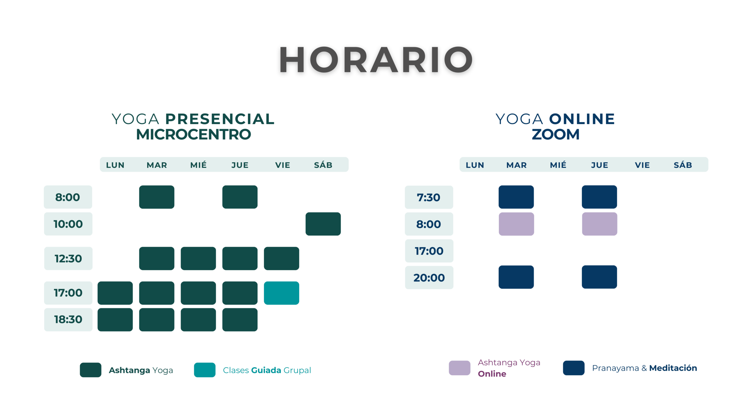 *Todos los horarios son aptos para principiantes. Sí es primera vez que asiste al estudio es necesario realizar una agenda previa.
